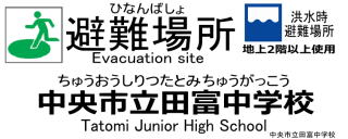 中央市立田富中学校は、中央市田富地区の新町第一、新町第二、臼井阿原第一、臼井阿原第二、新道東花輪第二、東花輪第一、東花輪第二、東花輪第三自治会の避難所に指定されています。災害時は避難所として機能します。